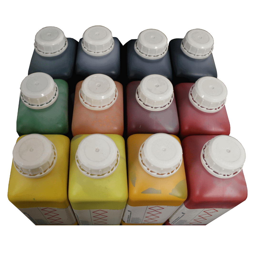 Amex Pigments are waterbased concentrated pigment tints that can be mixed with waterbased transparent and opaque bases, including discharge base. The produce Bright colours which are very similar to our pre-mixed waterbased and plastisol ranges. PVC, Phthalate, formaldehyde and heavy metal free. Shake the pigments well before use. Pigments should be added in certain percentage between 3% and 10 % according to different bases. Available in 250ml and 1l