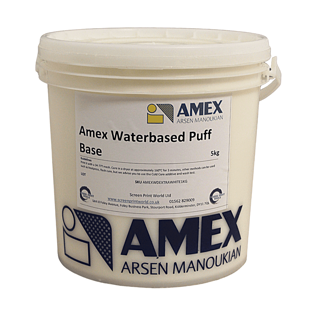 Amex Texprint UP Transparente is a ready to print Puff Base suitable for the addition of Amex Texprint Pigments. Amex Texprint UP Transparente can accept a maximum of 5% pigment to achieve full shade. The puff effect will be achieved once fully cured.