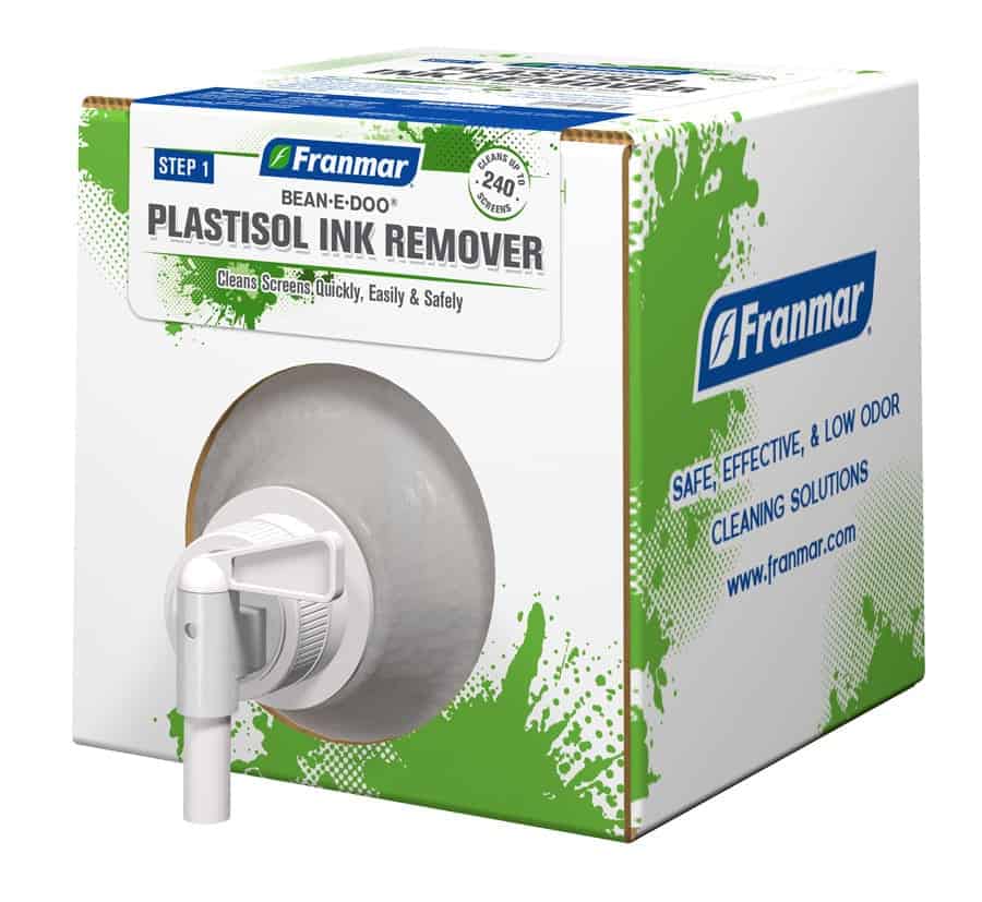 Plastisol Ink Remover effectively cleans screens without the odour and is a drain safe product. Franmar’s Plastisol Ink Remover eliminates the use of mineral spirits and other volatile solvents while saving time and money. Plastisol Ink Remover was the first product introduced by Franmar to replace the caustic, toxic, high odour products, and at a fraction of the cost. Plastisol Ink Cleaner effectively cleans screens without the odour and is drain safe. Low VOC and 100% biodegradable, this ink remover reduces the hazards of screen reclamation to workers and the environment.