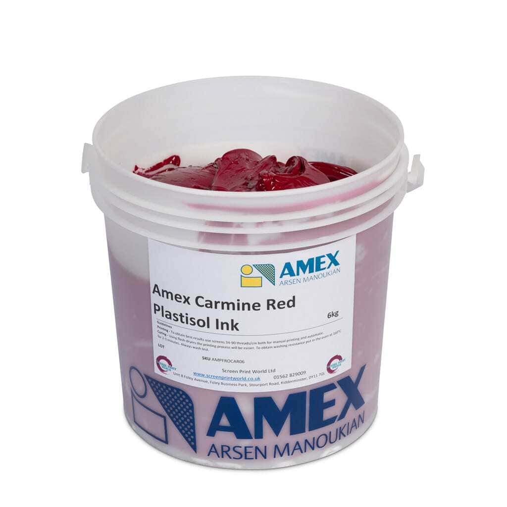 Amex Carmine Red Plastisol is an affordable press ready ink, available in both 1kg and 6kg tubs. Amex plastisol inks are phthalate and heavy metal free and due to their fine milling offer a soft feel and good elasticity once cured. They have a great mixing consistency and are super opaque and perfect for printing onto dark garments. These inks are quality Italian made inks and can be mixed together to obtain various shades and are suitable for manual or automatic printing.