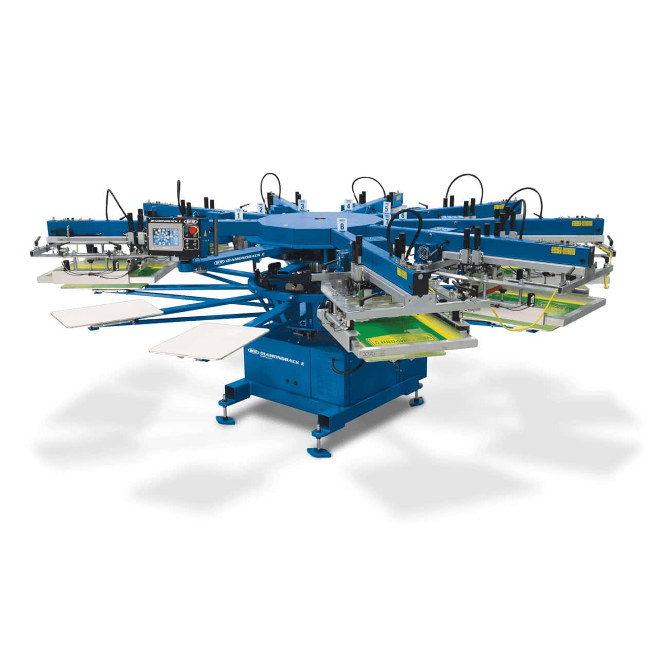 The Diamondback-E is available in 6, 8 or 10 colours and is M&R’s most affordable automatic textile screen printing press. The Diamondback E, has all the standard features you would expect to find on higher-end presses at twice the price.