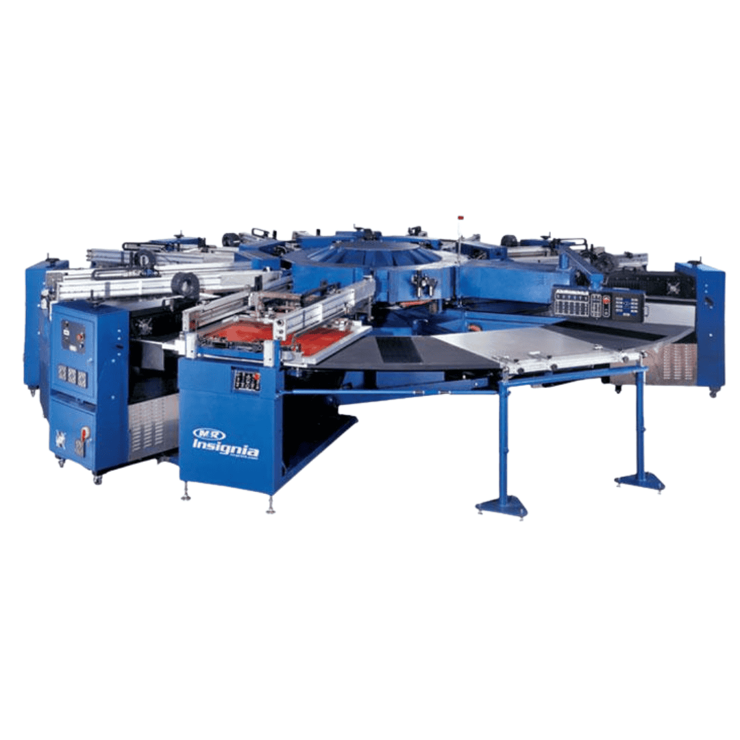 Insignia’s standard 118 watts/cm (300 watts/in) cure system can be set at 49, 79, 98, or 118 watts/cm (125, 200, 250, or 300 watts/in). Insignia also offers a 400-watt UV curing system and the M&R Switchback™ UV curing system. The optional 157 watts/cm (400 watts/in) system can be set at 63, 79, 118, and 157 watts/cm (160, 200, 300, and 400 watts/in). The optional Switchback™ UV cure system is infinitely adjustable from 63 to 157 watts/cm (160 to 400 watts/in), and accepts three types of UV lamps—Ferric/Iron Oxide, Gallium, and Mercury Vapor (standard)—allowing operators to select the optimal curing source and intensity for even the most difficult ink/substrate combinations. Most models offer optional double lamps at each station to provide additional curing (Models 4056 & 4061 offer double lamps only at the last station).