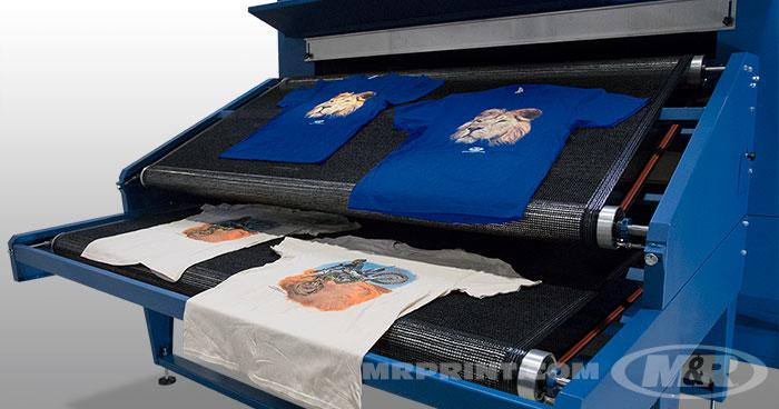 The Sprint 3000 D (patents pending) gas textile conveyor dryer utilizes a stacked dual belt design, effectively doubling throughput while keeping a small footprint dimension. It is designed to address new inks and printing methods such as direct-to-garment (DTG) and hybrid printing (screen + digital printing) and their vastly differing cure rates, as well as traditional screen printing. The Sprint 3000 D allows operators to quickly adjust dryer settings to production changes and demands, meaning production planning no longer needs to be dictated by traditional multiple-press, single-dryer scenarios. Operators can simply change the independent belt speeds and run their jobs!