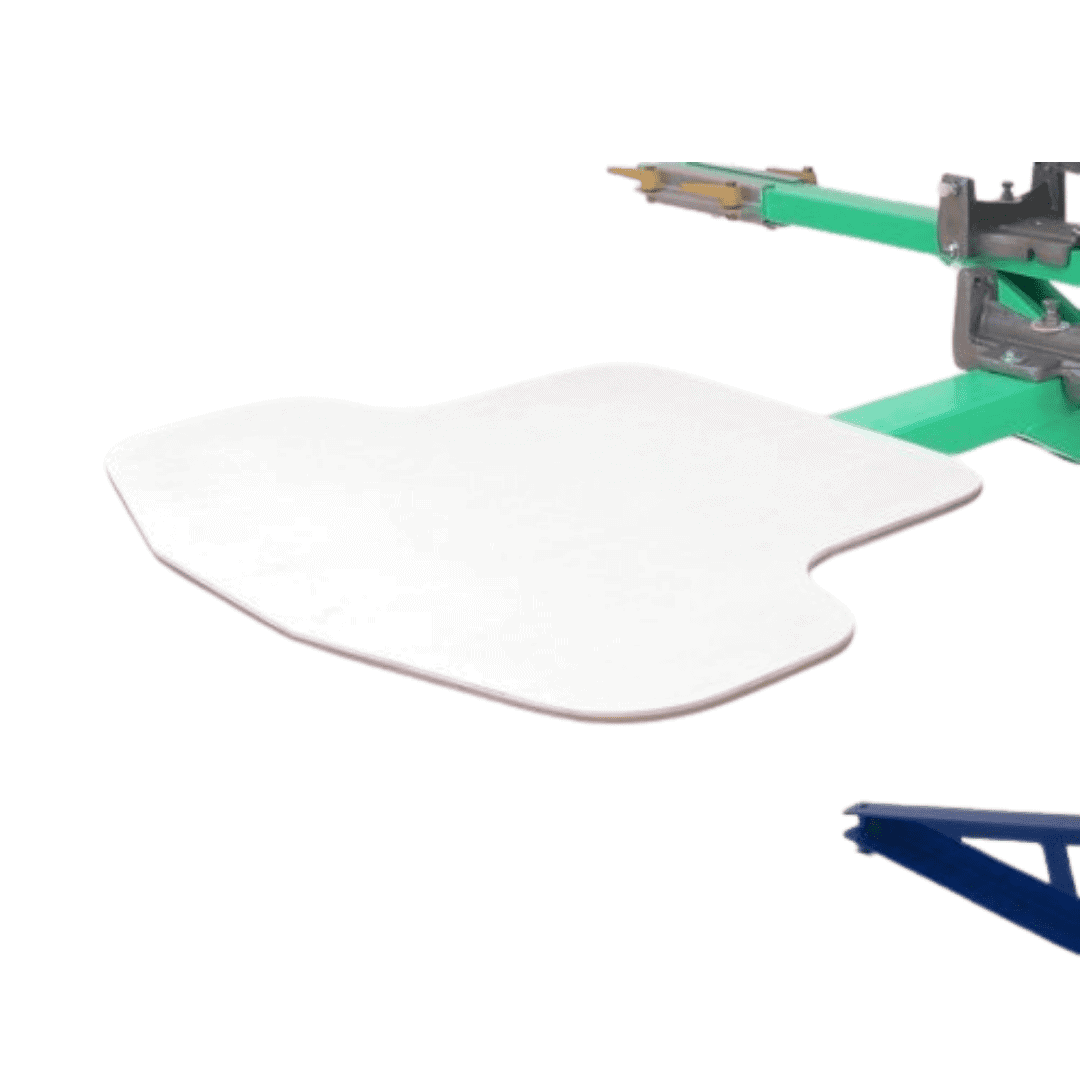 The Double Half Winged Pallet is an excellent specialty effect pallet which allows you to print across both shoulder seams of a standard t-shirt. When printing cap sleeve tees, this shape allows for true All-Over-Printing. Special shaping optimizes loading and image capacity in this shirt size sensitive pallet. Overhead Laser Alignment Systems are especially useful to help align the shirt the second time around. Double Half Wing Pallets are size sensitive to the shirts. This means that basically 2 shirt sizes will fit one pallet size. Purpose: