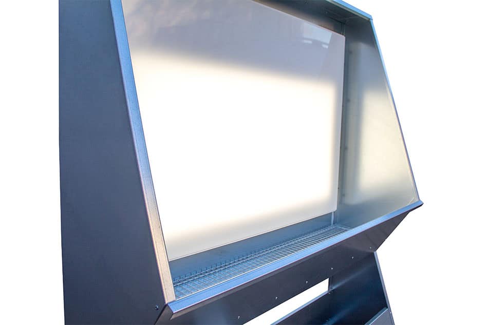 Back Lit Booths offer greater visibility, especially useful in darker environment. All lighting used is CE Approved.
