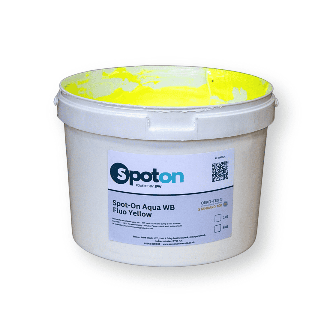 Spot-On Water Based colours are pre-mixed and ready to print inks in our popular and versatile hybrid base. This ink does not dry fast in the mesh and prints easily onto light or dark fabrics.