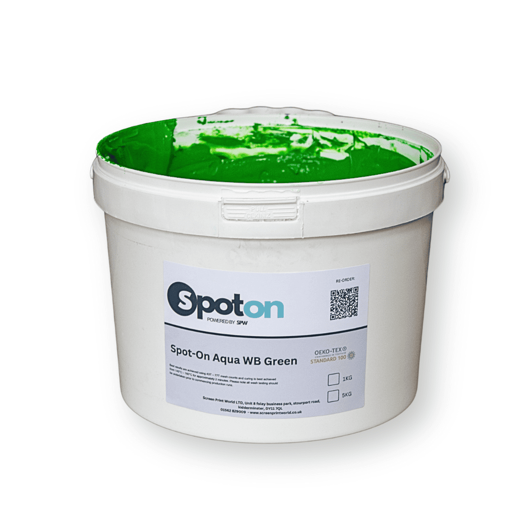 Spot-On Water Based colours are pre-mixed and ready to print inks in our popular and versatile hybrid base. This ink does not dry fast in the mesh and prints easily onto light or dark fabrics.