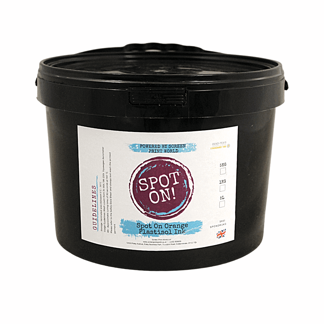 Spot-On colors are an extremely affordable press ready range of intermixable plastisol colours. These colours are available in 1kg and 5kg tubs. Spot on plastisol inks are phthalate and heavy metal free and offer a soft feel and good elasticity once cured. The Spot-On Colour Range offers brilliant bright colours, are easy to mix and print on manual presses. They are super opaque and perfect for printing onto dark garments, they offer true colours and print well onto all flash whites. These inks are suitable for manual or automatic printing.