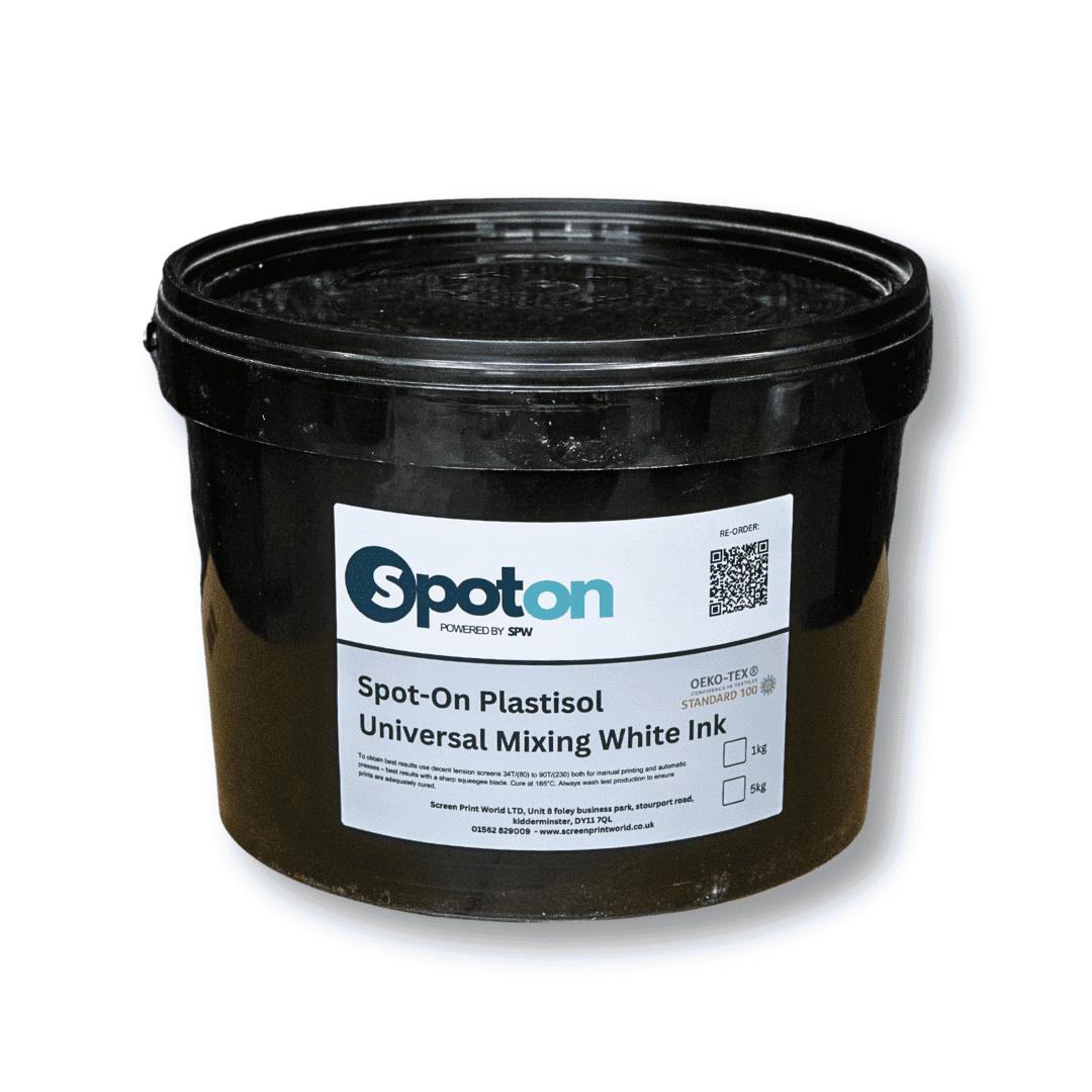 Spot-On Universal Mixing White compliments our economy range of Spot-On Colours. This is a Phthalate free product and is designed to be used as an addition to aid in mixing plastisol colours. A mixing white is not designed to be an Underbase White or a Direct Printing White, although it can be used as a highlight white if necessary. If an Underbase White is required, please look at our range of White Plastisols.